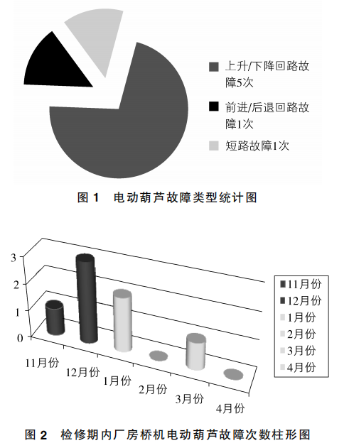 通过对2013-2014年检修期电动大香蕉免费在线视频故障类型统计及检修期内厂房桥机电动大香蕉免费在线视频故障次数柱形图的调查分析得出:上升/下降控制回路故障次数为5次,前进/后退控制回路故障1次,短路故障1次,由此可见,电动大香蕉免费在线视频控制回路的可靠性有待进一步提高。下面就对电动大香蕉免费在线视频的一些常见故障原因进行分析、探讨。